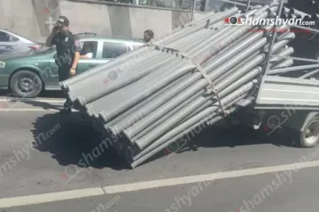 Արտակարգ դեպք՝ Երևանում, ջրախողովակներ տեղափոխող «Ford»-ի վրայից մի կապոց մասամբ...