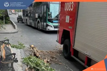 Խանջյան փողոցում ծառը կոտրվել և ընկել է քաղաքացու վրա