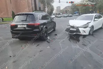 Երևանի քաղաքապետարանի մոտ բախվել են «Mercedes GLS 450»-ն ու «Toyota Camry»-ն