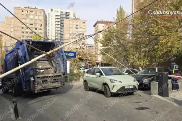 Երևանում աղբատար «KamAZ»-ը բախվել է գազատար խողովակներին ու էլեկտրասյանը, կոտրել...