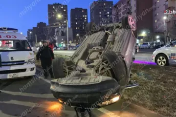 Երևանում «BMW X5»-ը դուրս է եկել երթևեկելի գոտուց և գլխիվայր շրջվել