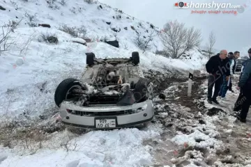 «BMW»-ն դուրս է եկել երթևեկելի գոտուց, բախվել հողաթմբին ու գլխիվայր շրջվել