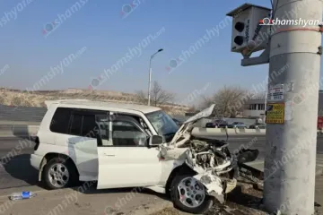 Երևանում «Mitsubishi»-ն դուրս է եկել երթևեկելի գոտուց և բախվել երկաթե սյանը