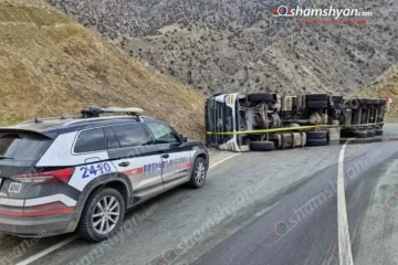 Տաթև-Լծեն ճանապարհին իրանական բեռնատարը, դեռևս անհայտ հանգամանքներում, կողաշրջվե...