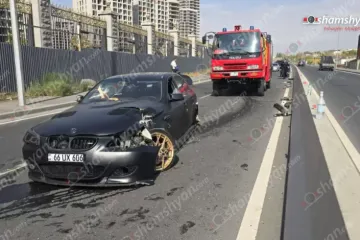 Երևանում «BMW»-ն դուրս է եկել երթևեկելի գոտուց, բախվել բազալտե եզրաքարին, հայտնվ...