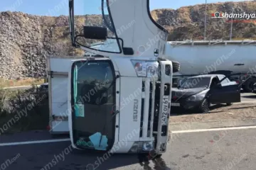 Կոտայքում բախվել են «Lada Priora»-ն ու բեռնատար «Isuzu»-ն. վերջինը կողաշրջվել է