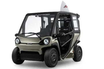 Սերֆինգի տախտակ և արևային վահանակ տանիքին. Էլեկտրական միկրոմեքենայի բագգի տարբեր...