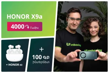 Ucom предлагает приобрести смартфон Honor X9a за 4000 драмов/месяц, плюс беспров...