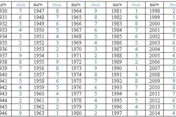 Աղյուսակում գտեք Ձեր ծնված տարին և իմացեք, թե ինչպիսի կյանք է Ձեզ համար նախատեսված