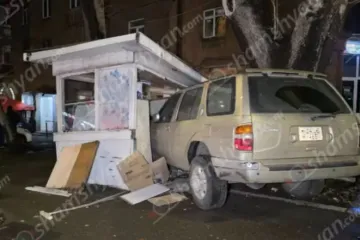 Ազատության պողոտայում բախվել են «Mazda 6»-ն ու «Nissan Pathfinder»-ը, վերջինն էլ մխրճվել է կրպակի մեջ