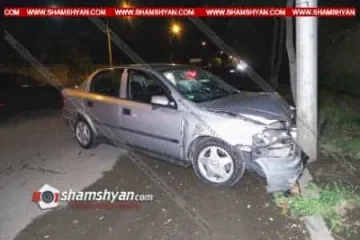Երևանում բախվել են Mercedes-ն ու Opel-ը. վերջինս էլ բախվել է երկաթե էլեկտրասյանը
