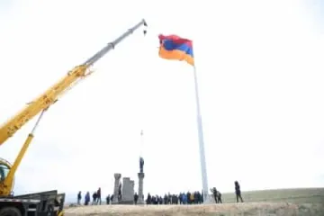 Հայ-թուրքական սահմանին մոտ 24 մետր բարձրությամբ դրոշ և խաչքար է տեղադրվել (լուսանկարներ)