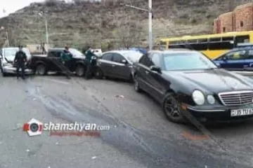 Խոշոր վթար Մյասնիկյան պողոտայում. բախվել են Lincoln-ը, 2 Mercedes-ներ, Ford-ն ու Kia-ն. կան վիրավորներ