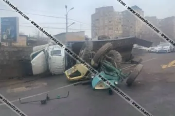 Երևանում տրակտորով բարձված քարշակը բախվել է մի քանի ավտոմեքենայի և կողաշրջվել