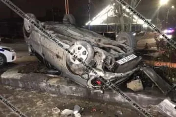 Երևանում Opel-ը բախվել է բազալտե եզրաքարերին և գլխիվայր հայտնվել բենզալցակայանում