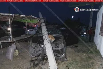 Արագածոտնի մարզում բախվել են Opel-ն ու BMW-ն. վերջինը հայտնվել է գյուղմթերքների վաճառքի տաղավարի մեջ. Shamshyan.com