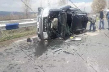 Խոշոր վթար Երևան-Իջևան ճանապարհին․ Mitsubishi-ն կողաշրջվել է (ֆոտո)