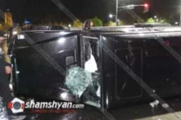 Խոշոր վթար Երեւանում․ Mercedes-ը տապալել է լուսակիրը եւ շրջվել․ երեք երեխա է հոսպիտալացվել