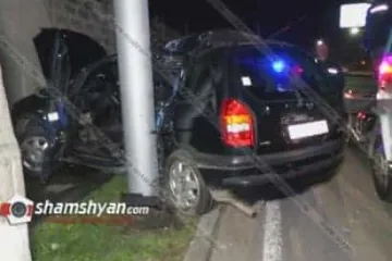 Իսակովի պողոտայում Opel-ը բախվել է էլեկտրասյանը․ վարորդը եւ ուեւորը հոսպիտալացվել են