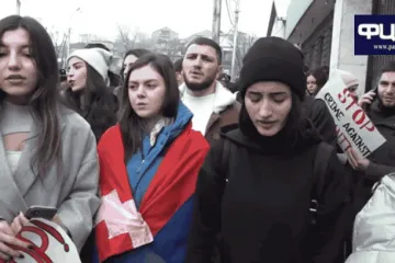 Ուսանողներն Արցախի օրհներգը միացրին Եվրամության գրասենյակի առջև