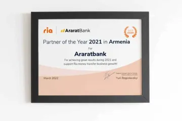 ԱրարատԲանկը ճանաչվել է Ria Money Transfer–ի «Տարվա գործընկեր»