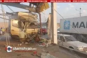 Սարսափելի դեպք Երևանում. բախվել են բեռնատարն ու «Բոգդան» ավտոբուսը. ուղևորն իրեն դուրս է նետել ավտոմեքենայից, տեղում մահացել, բեռնատարն էլ մխրճվել է բենզալցակայանի մեջ