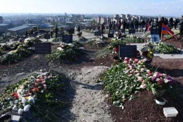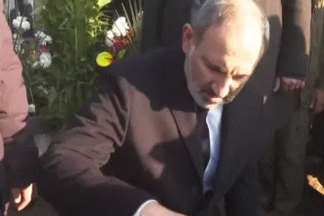 Փաշինյանը ծնկած խունկ է ծխում զոհերի գերեզմաններին