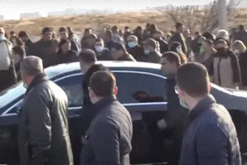 Անվտանգության աշխատողները վազում են Փաշինյանի մեքենայի կողքով