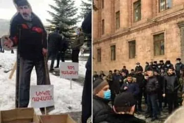 Վանաձորցիները Փաշինյանի խրտվիլակն էին բերել Լոռու մարզպետարանի մոտ (ֆոտո)